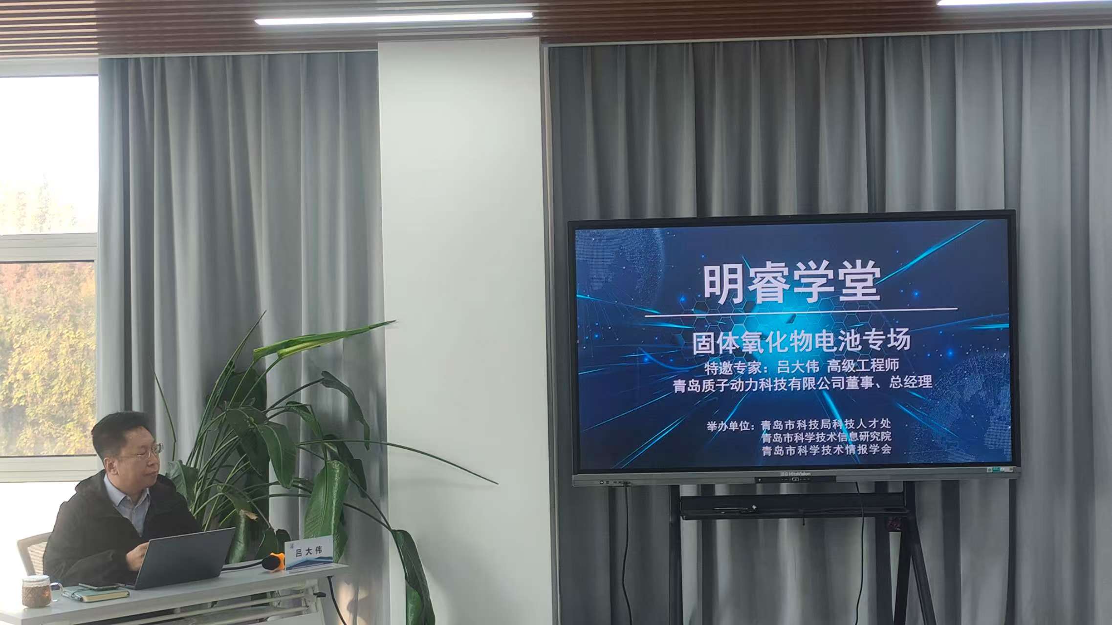11月14日下午,市科技情报学会联合市科技局信息院、市科技局人才处举办“明睿学堂”第十六期——固体氧化物电池(SOC)技术创新与应用实践专题讲座。特邀青岛质子动力科技有限公司总经理吕大伟进行专题分享,学会会员单位浦发银行青岛分行受邀出席。
