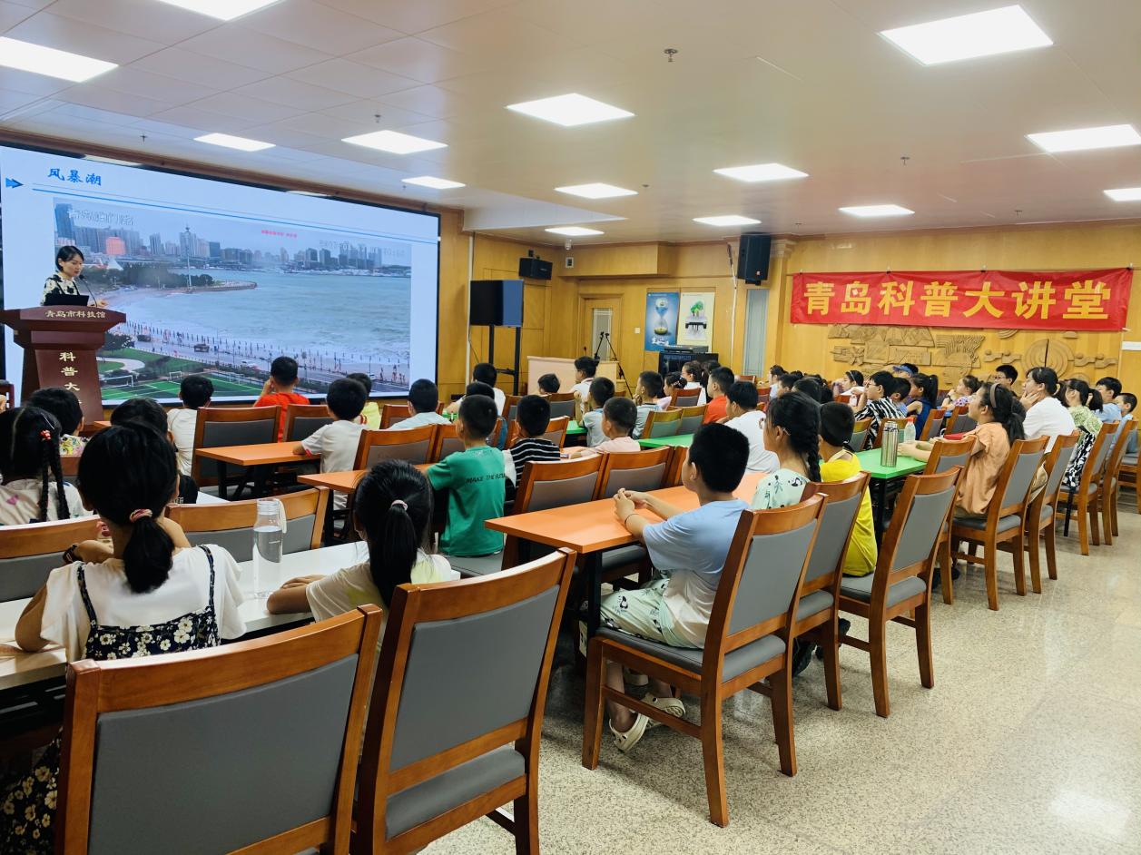 8月3日,本年度第七期青岛科普大讲堂在市科技馆举行。本期活动特邀自然资源部北海预报减灾中心高级工程师钱程程,为同学们带来《海洋灾害与综合减灾》专题讲座,现场百余名观众认真聆听,踊跃参与互动。