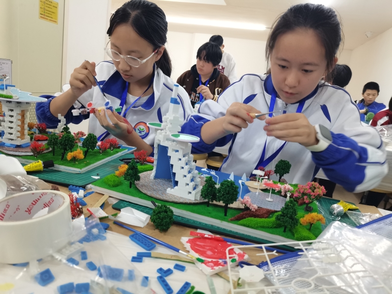 比赛现场,选手们全神贯注,精雕细琢。在“古典园林场景创意制作赛”中,亭台楼阁、假山流水布局精巧,尽显中国传统建筑的含蓄与雅致;而在“新农村场景创意制作赛”和“梦想建筑场景创意制作赛”中,现代感十足的民居、充满奇思妙想的未来建筑则展现了青少年们对美好生活与未来发展的无限憧憬。“中国历史会议会址场景制作赛”则引导同学们重温峥嵘岁月,通过模型制作加深对党史和革命精神的理解。