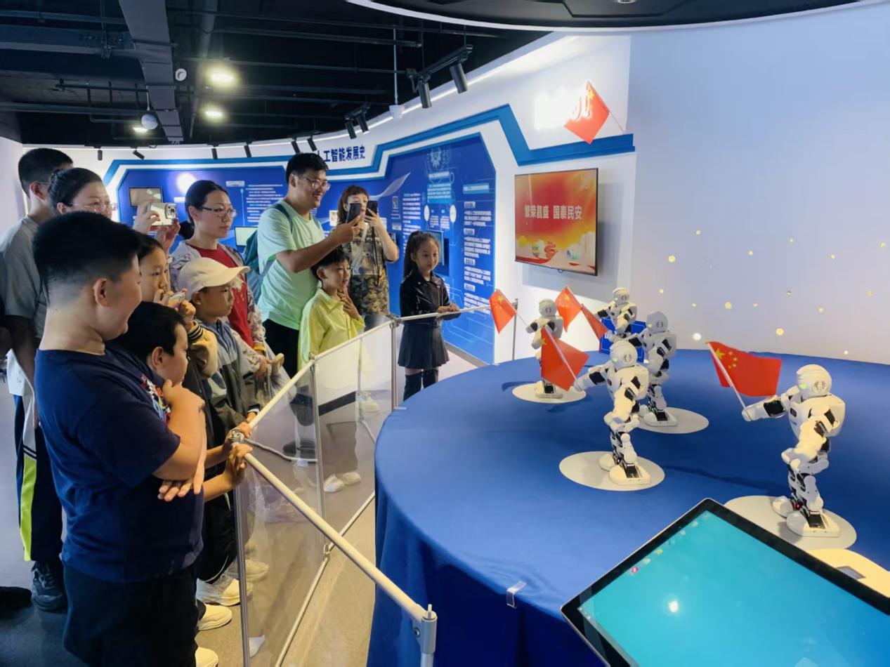 场馆内,当音乐声响起,小机器人挥动起国旗,迈动着舞步,吸引了大量青少年驻足观看与互动,科技的神奇与国庆的喜悦一同绽放。在课堂上,同学们随老师一同探究“月相的秘密”,通过亲手制作三球仪,了解月亮盈亏、昼夜交替等天文现象,留下了精彩难忘的中秋记忆。