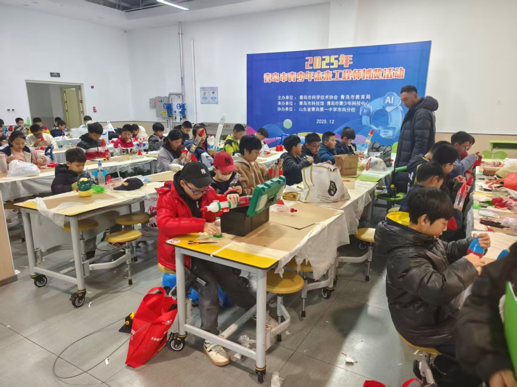 12月7日,2025年青岛市青少年未来工程师博览活动在青岛第一中学市南分校成功举办。本次活动由青岛市科学技术协会、青岛市教育局联合主办,青岛市科技馆(青岛市青少年科技中心)承办,全市115所学校的692名中小学生同台竞技,围绕投石车精准挑战、水火箭航天探索和创意花窗等3个国潮创新项目展开激烈角逐。