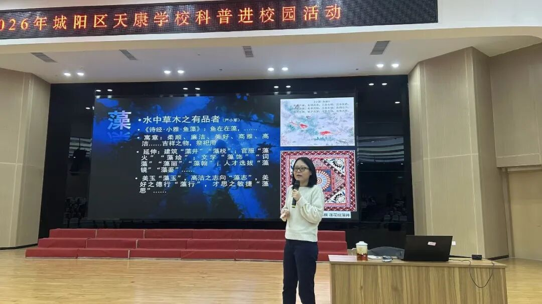 3月26日,由青岛市青年科学家协会主办的科普大讲堂活动在天康学校顺利举行。本期科普大讲堂由中国水产科学研究院黄海水产研究所研究员汪文俊担任主讲嘉宾,以“解码海藻世界”为主题,为同学们揭开海洋藻类的神秘面纱,带来一堂兼具专业性与趣味性的海洋科普盛宴。