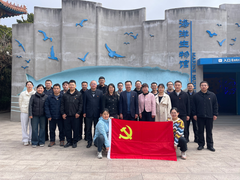 为深入学习贯彻党的二十届四中全会精神,紧扣“十五五”规划谋划开局,树立和践行正确政绩观,全面落实青岛市“干部作风建设年”部署要求,推动党建与业务深度融合,3月24日上午,青岛海洋科技馆第二党支部与中国水产科学研究院黄海水产研究所(以下简称“黄海所”)资源室党支部联合开展“党建引领聚合力、深蓝共建促发展”主题党日活动。黄海所资源室党支部书记单秀娟等17名党员,青岛海洋科技馆党总支书记王云忠、总支委员、副馆长靳鹏、以及第二党支部党员代表、民主党派代表等共8人参加活动。