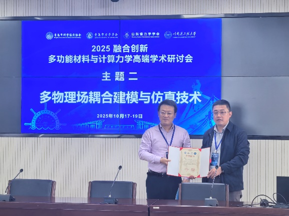 会议期间,学者们围绕多功能材料设计与性能预测方法、多物理场耦合建模与仿真技术、数据驱动与智能材料设计、结构优化创新与工程应用4个主题方向在分会场开展学术交流。邀请北京大学李法新教授、中国矿业大学陈培见教授、哈尔滨工程大学宋智广教授、哈尔滨工程大学李晨亮教授、山东大学张林教授、上海大学张顺琦教授、山东科技大学周锡龙教授、江西理工大学孙政教授、中国石油大学(华东)刘建林教授、中国海洋大学杨树桐教授、哈尔滨工程大学曲嘉教授、青岛大学王发杰教授等领域内专家作分会场邀请报告。