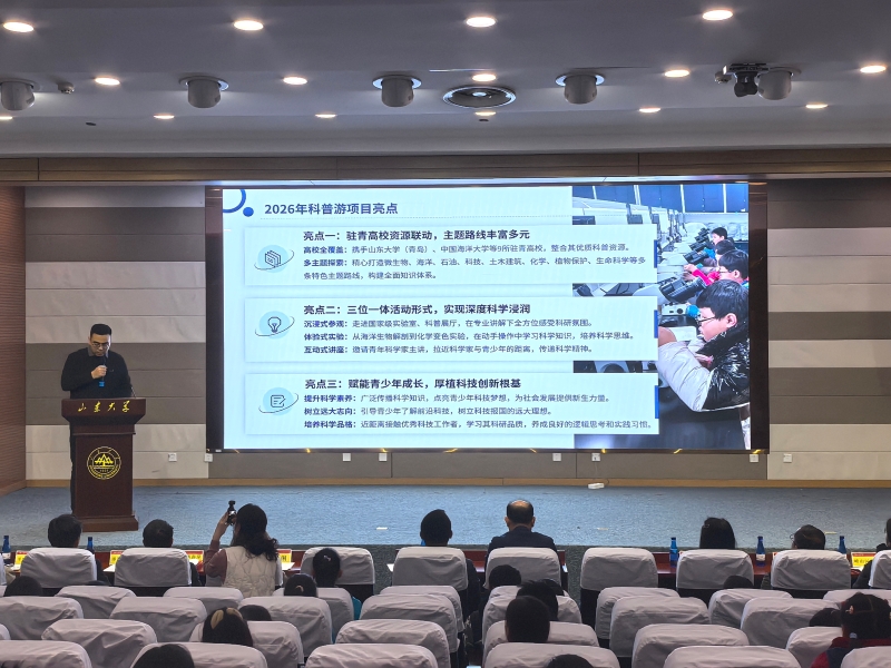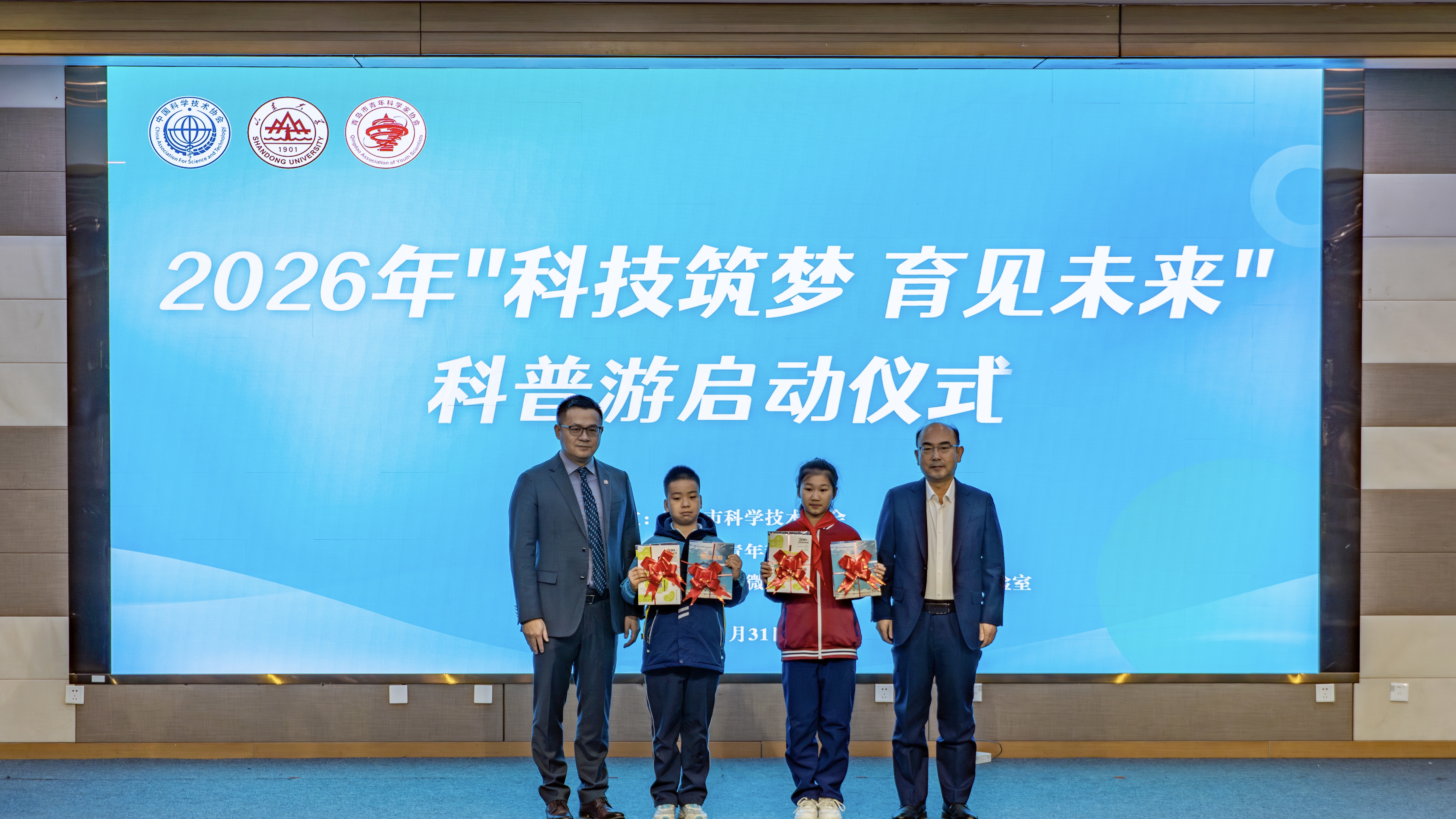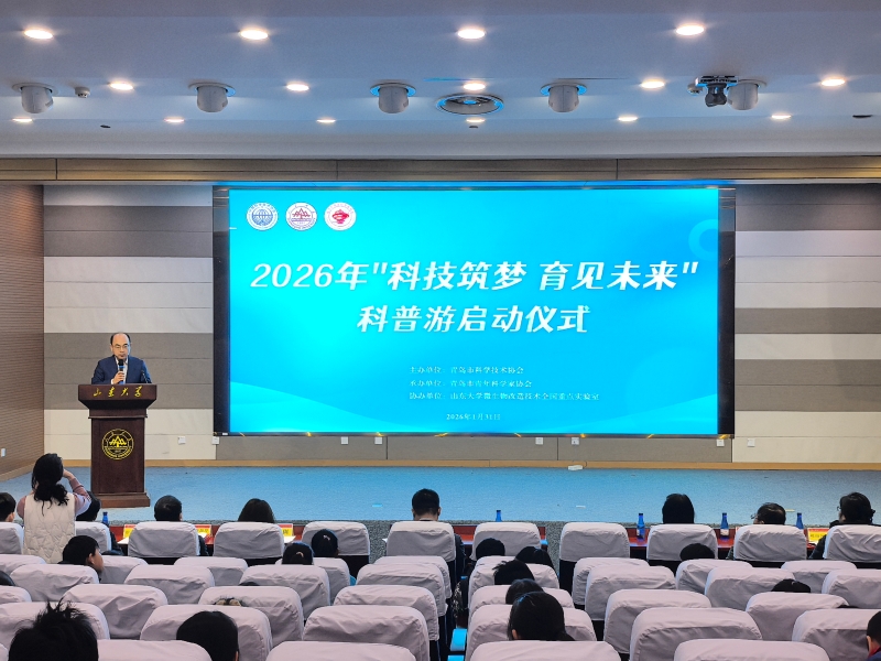 1月31日,2026年“科技筑梦 育见未来”科普游启动仪式在山东大学(青岛)博物馆报告厅举行。青岛市科协党组成员、副主席秦云鹏出席活动并讲话,山东大学(青岛)副校长、微生物技术研究院院长、微生物改造技术全国重点实验室常务副主任李盛英出席活动并致欢迎词,崂山实验室研究员、青岛市青年科学家协会副会长冯海暴主持活动,区(市)科协科普负责同志、胶州市少海实验学校、福州路小学的师生代表共同参与启动仪式。