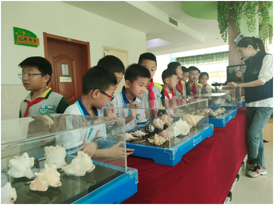 活动现场,“科普大篷车”带来了50余种海洋生物标本,包括深海猎手灰鲭鲨、憨态可掬的企鹅、毛茸茸的海豹、稀有动物中华鲎、最大海蟹巨螯蟹……这些标本刚被海洋科技馆的科普志愿者们摆上展台,现场就被好奇的学生们围个水泄不通。科普志愿者们用生动易懂的语言为孩子们讲解生物标本的制作要点、海洋生物的外形特征、生活环境和习性,并对学生们提出的问题一一详细解答,在互动中学生们了解了各种海洋生物的知识,增强他们的好奇心和探求欲以及海洋保护意识和责任感。