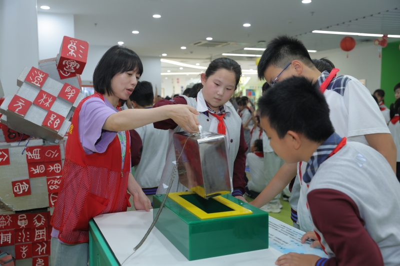 与会领导、嘉宾与师生共同观摩了东 B 片区 10 所学校的科技教育活动及丰硕实践成果,并参与现场体验,在亲身互动中感受科技创意的独特魅力与无限乐趣。
