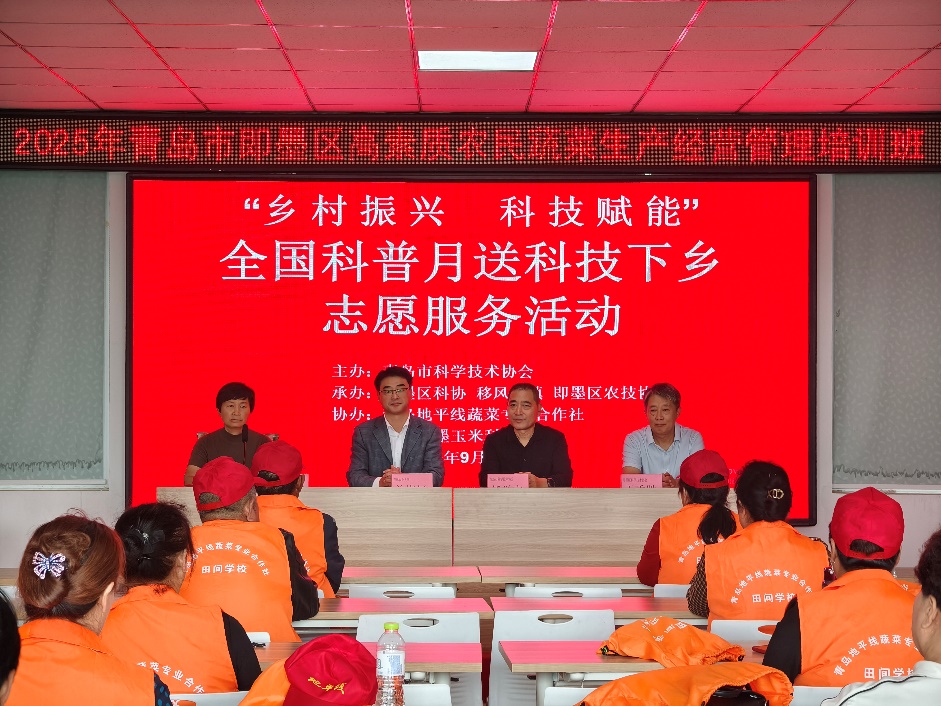 为深入贯彻落实乡村振兴战略部署,助力乡村产业振兴与人才振兴,切实提升农民群体科学素养,9月24日,由青岛市科协主办,即墨区科协承办的“乡村振兴 科技赋能”——全国科普月送科技下乡志愿服务活动在即墨区移风店镇地平线蔬菜专业合作社举办。