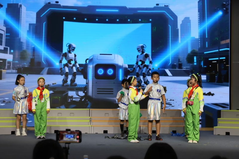 三年级《勤劳药》以趣味横生的剧情,展现了勤劳带来的快乐与成长;《我的航天梦》激发了学生们对宇宙世界的好奇与向往。四年级学生以两场风格迥异的剧目,展现了对科学的探索与对历史的铭记。英文情景剧《星际追梦:小小科学家的太空之旅》将英语与科幻完美融合,展现了航天志向与国际视野;《小萝卜头》通过重现红色经典,让学生们铭记历史,珍惜当下的幸福生活;创意情景剧《机器人总动员之环保小卫士》带大家树立科技改变生活、环保守护家园的理念。