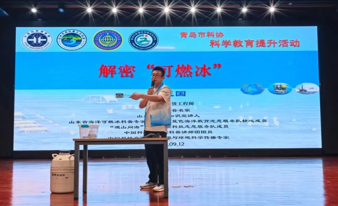 9月12日,青岛海洋地质研究所正高级工程师,山东省海洋知识宣讲人、青岛市科普名家、“观山问海”海洋地质科技志愿服务队孟庆国博士走进即墨区创智实验学校,为600余名同学带来了一场精彩纷呈的题为《解密“可燃冰”》的海洋地质科普课。