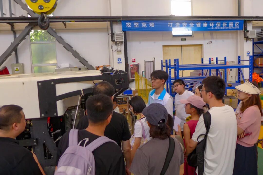 最后,大家来到“深海车间”。车间内,按1:1比例复刻的“蛟龙”号模型巍然矗立。工作人员耐心解答每一个好奇提问,并详细讲解“蛟龙”号载人潜水器的发展历程,同时开展互动问答环节。当看到车间内“蛟龙”号模型,四年级的泽泽说道:“原来‘蛟龙’号长这样子呀,感觉就像走进了科技大片的现场!”