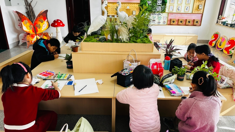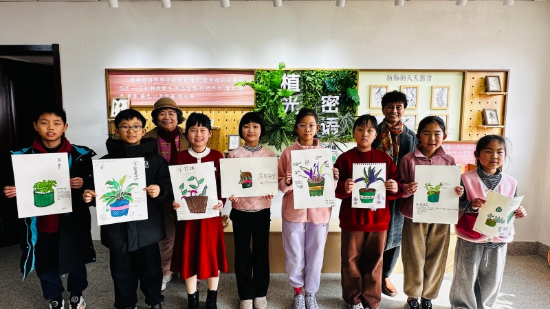 理论讲解结束后,孩子们迫不及待开启实践环节。大家纷纷挑选自己喜爱的植物,认真观察、仔细描绘,用画笔和文字记录下植物的形态与感受。现场陪同孩子前来的家长也被温馨的氛围感染,拿起画笔一同参与,沉浸式体验自然观察与创作的乐趣。