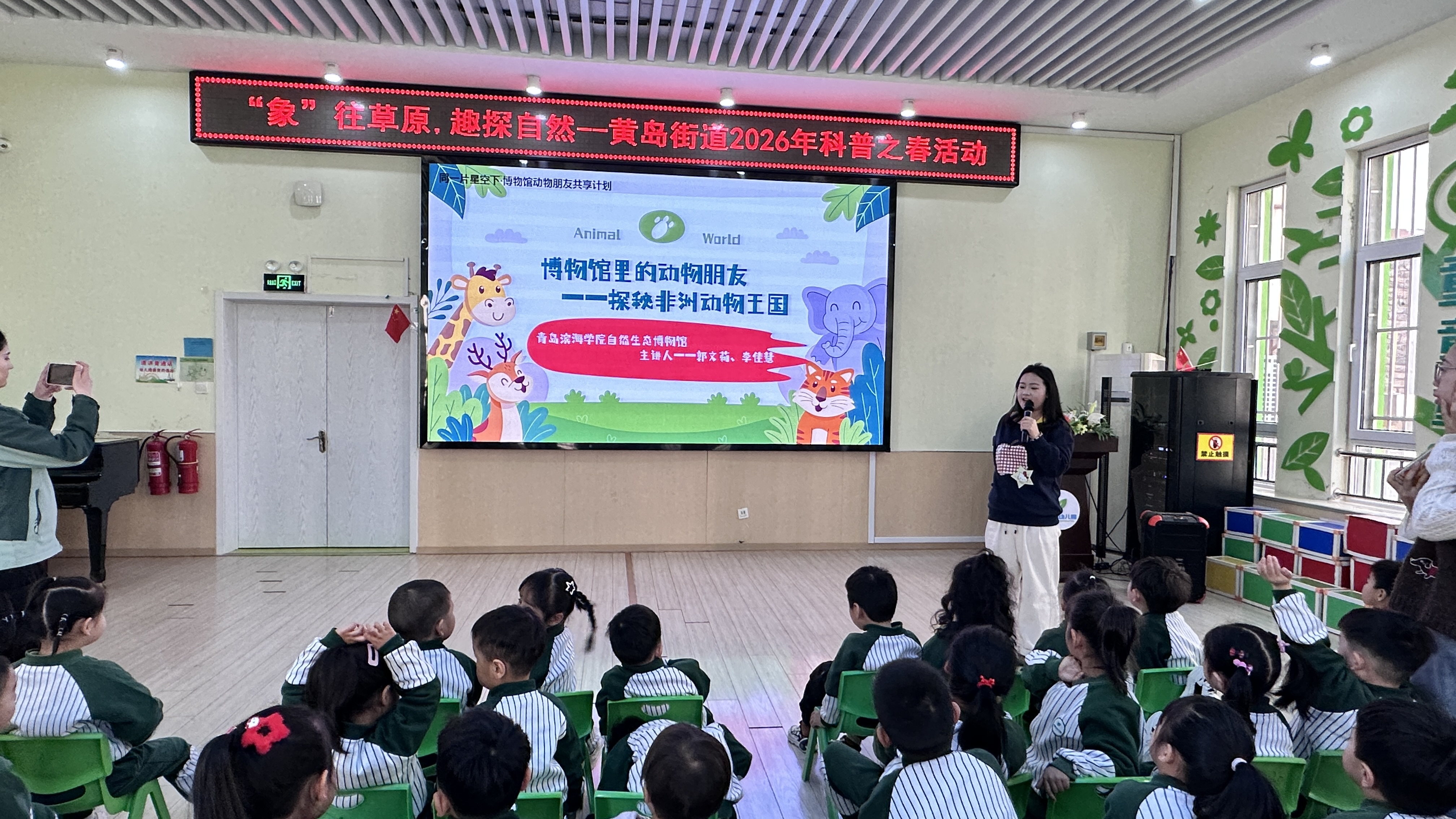 3月23日,青岛西海岸新区科协、黄岛街道新时代文明实践所特邀青岛滨海学院科普馆讲师团队走进和圣幼儿园,带来一堂生动有趣的动物科普课堂,让非洲大草原的风吹进幼儿园。