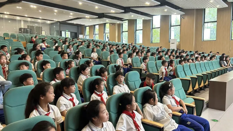 讲座互动环节气氛热烈,吴莹莹老师提出关于左旋螺与右旋螺的分辨方法、不同贝壳的区分要点等问题,梁潇老师则围绕中华鲟的年龄、嘴巴和胡须等特点进行提问。面对两位老师的问题,学生们热情高涨,纷纷举手踊跃回答。针对两位老师提出的海洋污染和保护问题,同学们也都能对答如流,充分展现出学生们对海洋知识的浓厚兴趣与对海洋生态保护的态度。活动的最后吴老师给滨海小学赠送了海洋知识类书籍,希望同学们能够在书页间探索蔚蓝深海的奥秘。